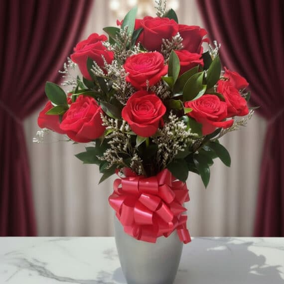 Jarrón con 12 Rosas