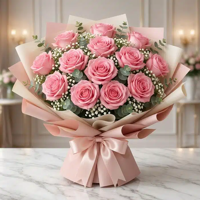 Haz que ese ser especial tenga un día inolvidable, envía este delicado Ramillete o Bouquet de Rosas Rosadas con